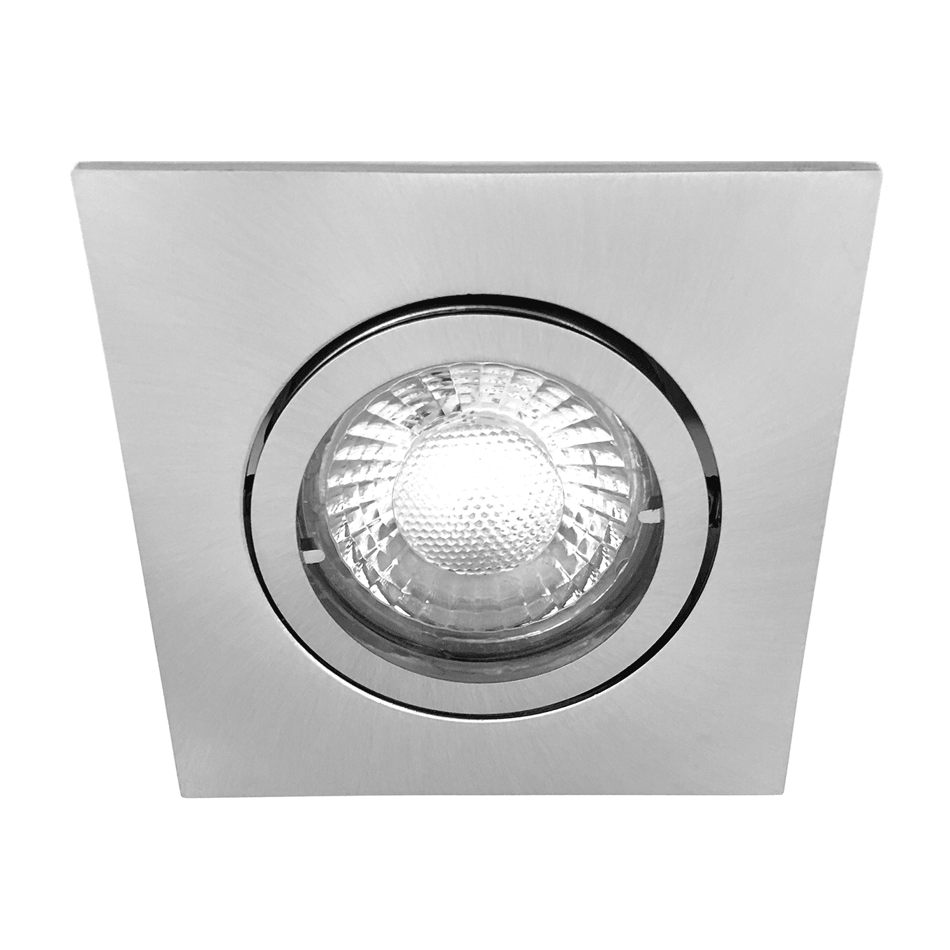 LED Einbauleuchte Aluminium Edelstahloptik Eckig 4 Watt 345 Lumen (ersetzt 50 Watt) warmweiß GU10 inkl. Anschlussbox